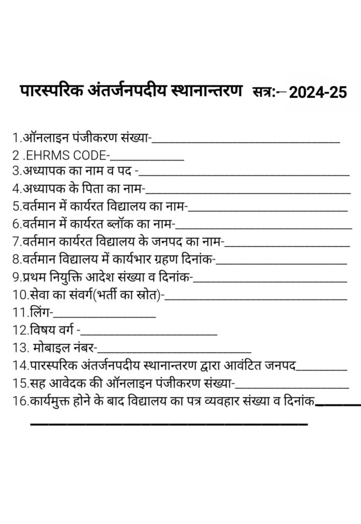 सभी फाइल के कवर पर चिपका दें: पारस्परिक अंतर्जनपदीय स्थानांतरण 2024-25