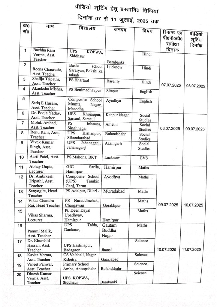 Home PRIMARY KA MASTER पी०एम० ई-विद्या डी०टी०एच० टी०वी० चैनलों हेतु वीडियो निर्माण हेतु आयोजित कार्यशाला में प्रतिभाग के संबंध में।