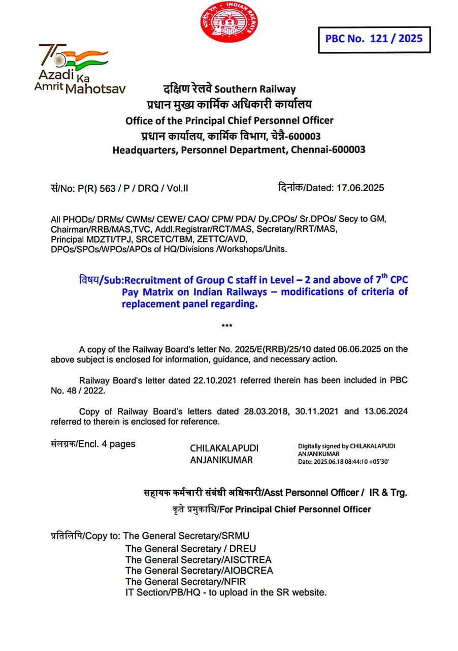 👉रेलवे बोर्ड ने अब ग्रुप-C (Level-2 और उससे ऊपर) की भर्तियों में Waiting List/Replacement Panel की प्रक्रिया बंद कर दी है।✔️✔️