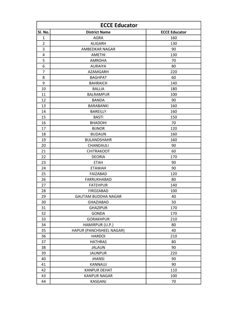 Home ECCE वार्षिक कार्ययोजना एवं बजट 2025- 26 में प्राप्त अनुमोदन के क्रम में स्वीकृत 8800 परिषदीय प्राथमिक एवं कंपोजिट विद्यालयों में बाल वाटिका कक्षा हेतु ECCE एजुकेटर की सेवाएं प्राप्तकिए जाने के संबंध में