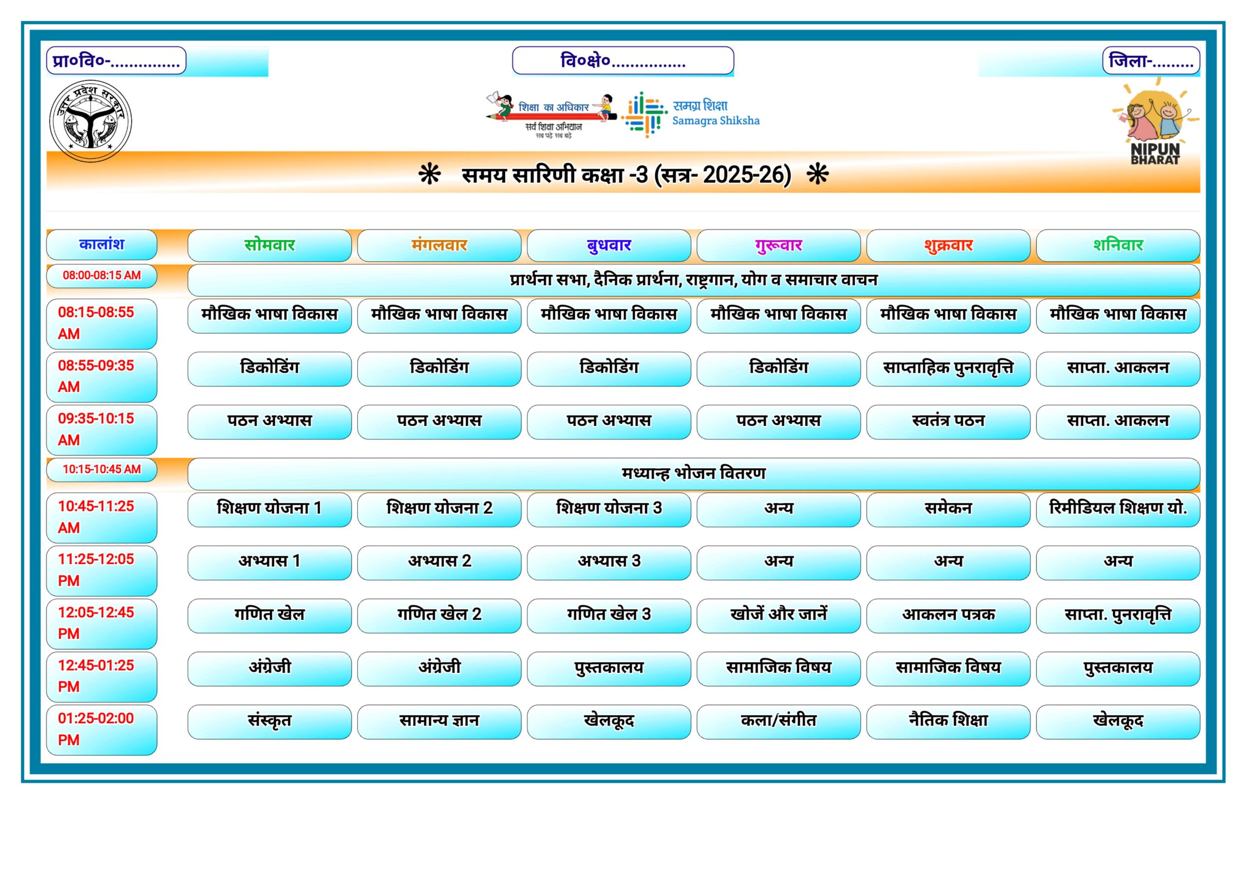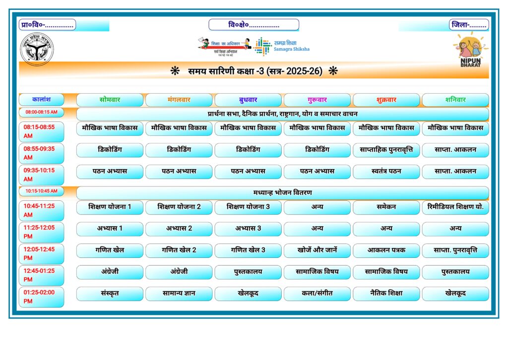 समय सारिणी कक्षा -3 (सत्र-2025-26)