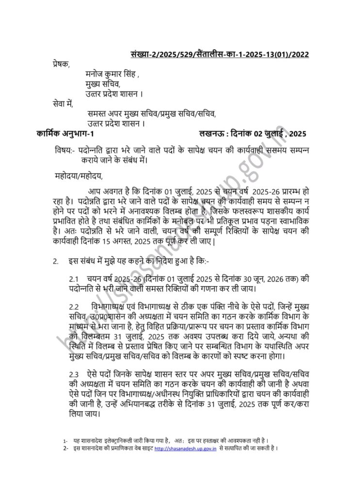 Home PRIMARY KA MASTER NEWS पदोन्नति द्वारा भरे जाने वाले पदों के सापेक्ष चयन की कार्यवाही ससमय संपन्न कराए जाने के संबंध में