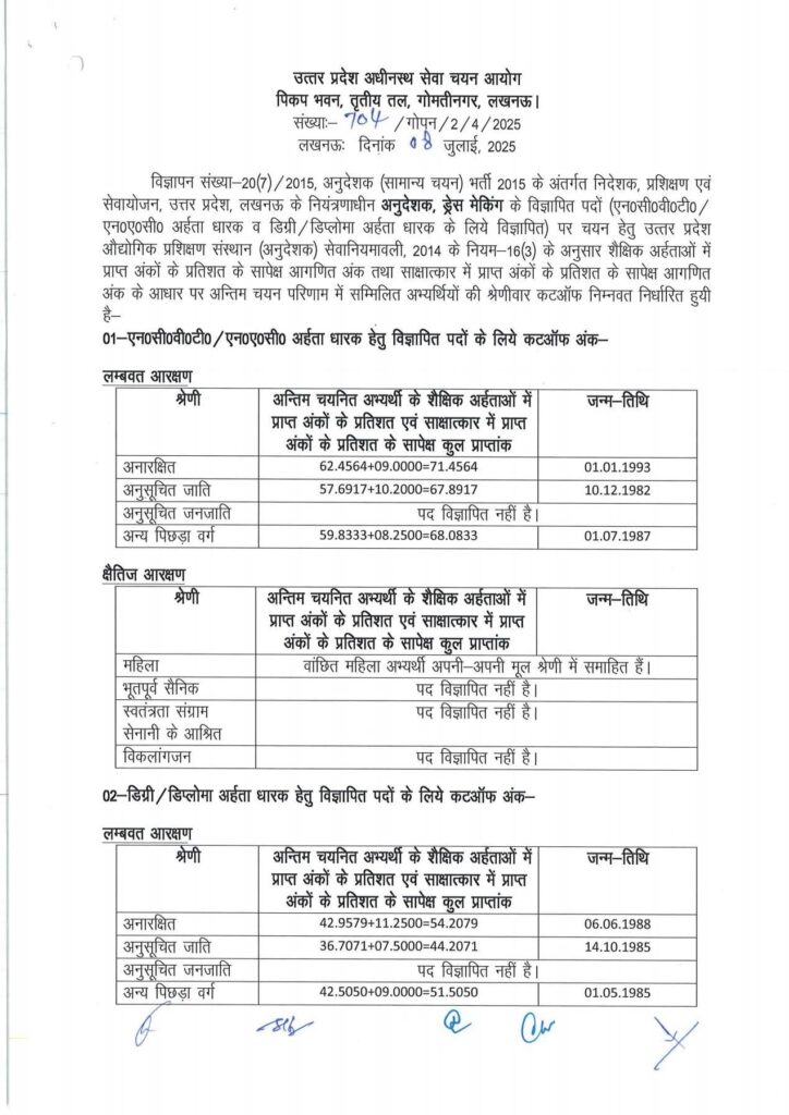 UPSSSC अनुदेशक भर्ती 2015 के परिणाम का कटऑफ जारी