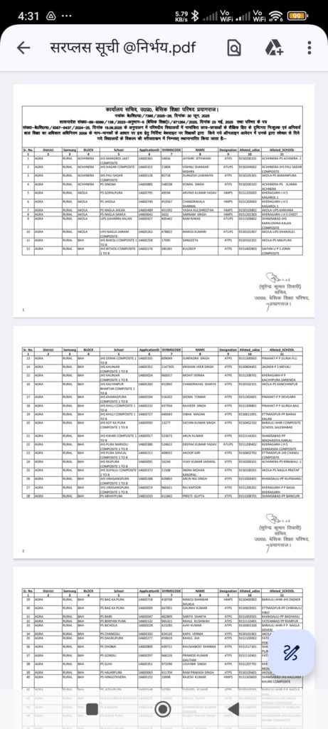 शासनादेश संख्या-18-5099/138/2023-অনুमाग-5 (बेशिक शिक्षा)।/971264/2025, दिनांक 23 मई, 2025 तथा परिषद के पत्र संख्या-बे०शि०प०/8367-6437/2024-25, दिनांक 18.06.2026 के अनुपालन कलन में परिषदीय विद्यालयों में नामांकित छात्र-छात्राओं के शैक्षिक हित के दृष्टिगत निःशुल्क एवं अनिवार्य बाल शिक्षा का अधिकार अधिनियम 2009 के मान-मानकों के आधार पर इस हेतु निर्दिष्ट वेबसाइट पर शिक्षकों द्वारा किये गये ऑनलाइन आवेदन में उनके द्वारा स्वेच्छा से दिये गये विद्यालयों के विकल्प की वरीयताकम में निम्नवत् स्थानान्तरित किया जाता है-