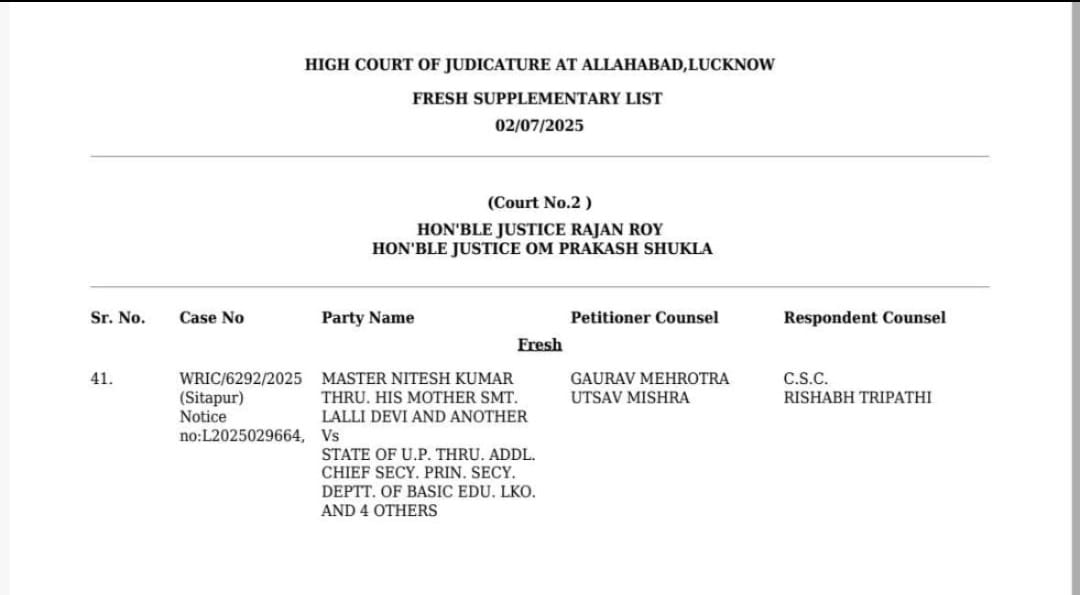आज matter court no 2 में जस्टिस राजन रॉय और जस्टिस ओ पी शुक्ला की बेंच में सुना जाएगा।