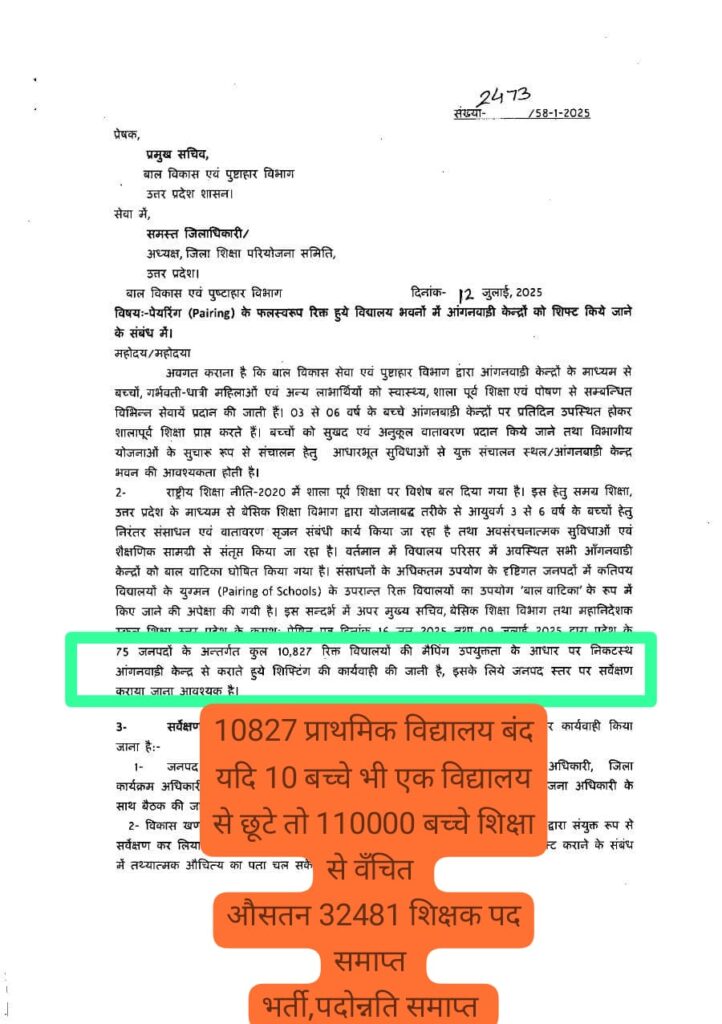 Home PRIMARY KA MASTER 9 जुलाई 2025 तक 10827 विद्यालय मर्ज हुए है। , देखें यह आदेश
