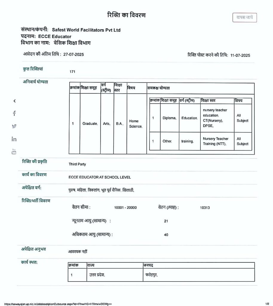 ECCE_Educator भर्ती #फतेहपुर विज्ञापन जारी