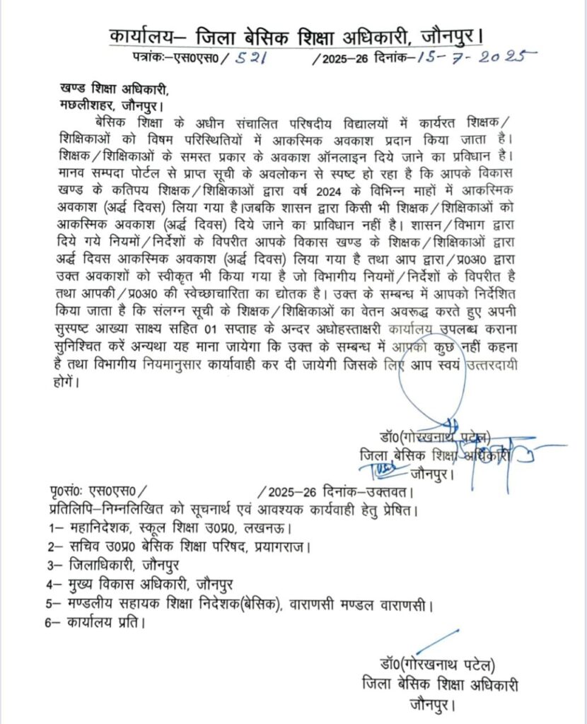 बेसिक शिक्षा विभाग ने शिक्षकों को HALF CL देय नहीं है, देखें BSA का आदेश