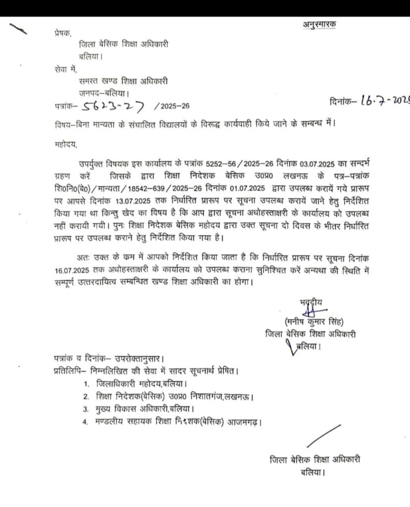 Home PRIMARY KA MASTER बिना मान्यता के संचालित विद्यालयों के विरुद्ध कार्यवाही किए जाने हेतु आदेश