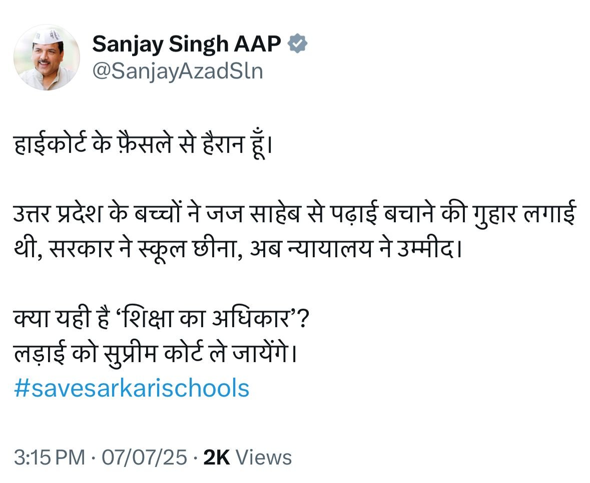 सांसद संजय सिंह की HC के फैसले पर प्रतिक्रिया, हाईकोर्ट के फ़ैसले से हैरान हूं