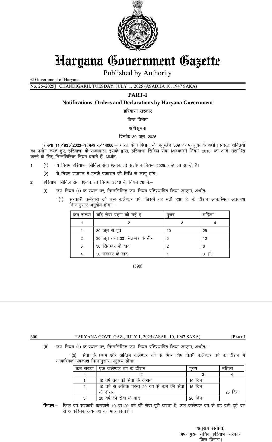 हरियाणा-Female employees को 25 CL का लेटर जारी