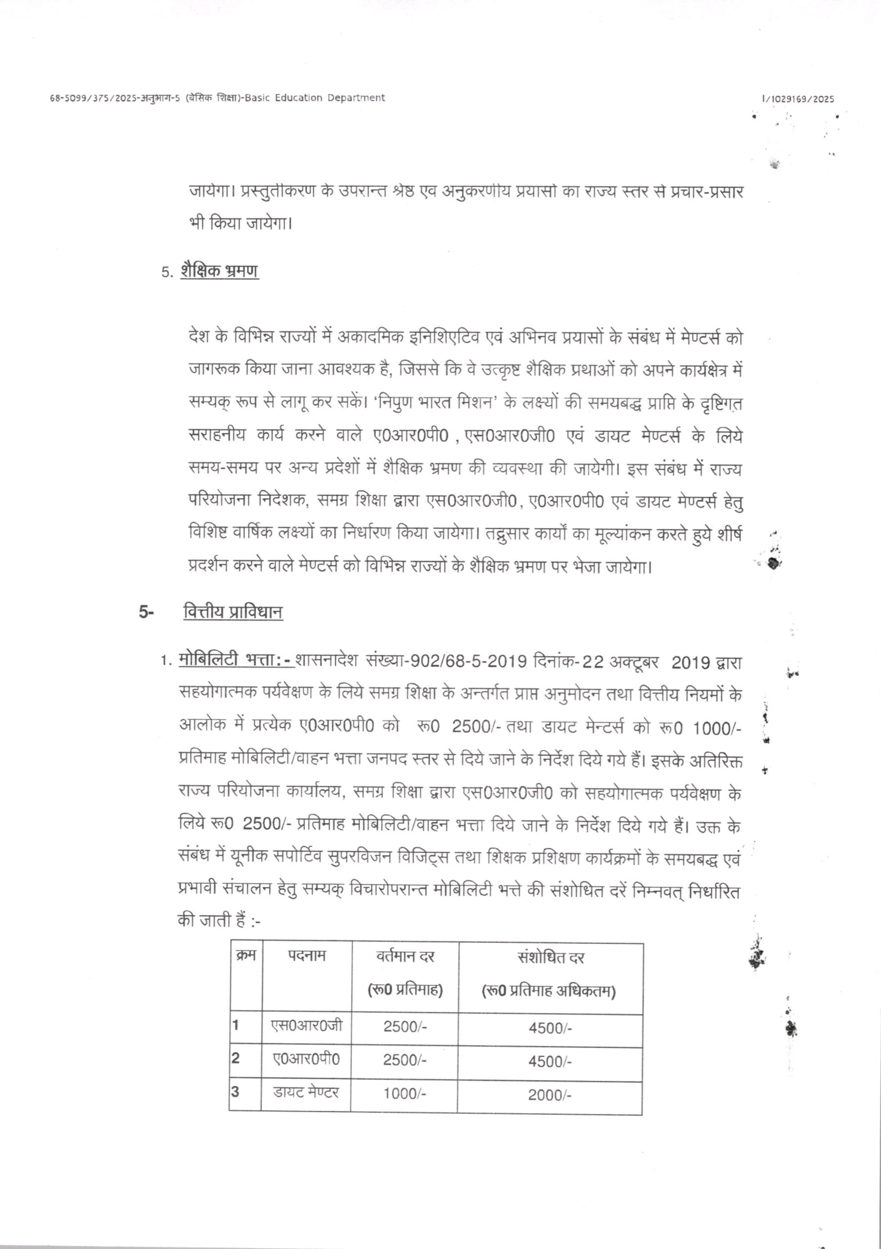 ARP और SRG को सपोर्टिव सुपरविजन के लिए मोबिलिटी/वाहन भत्ते की दरों में भारी-भरकम वृद्धि…अब इन्हें 2500 रुपये प्रतिमाह के स्थान पर 4500 रुपये प्रतिमाह दिए जाएंगे।