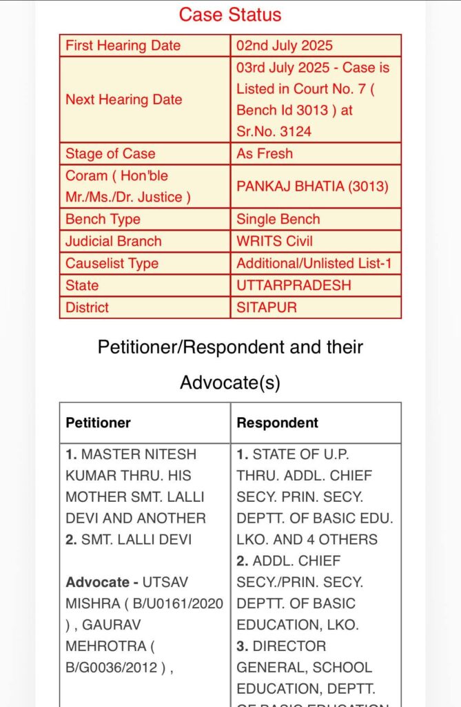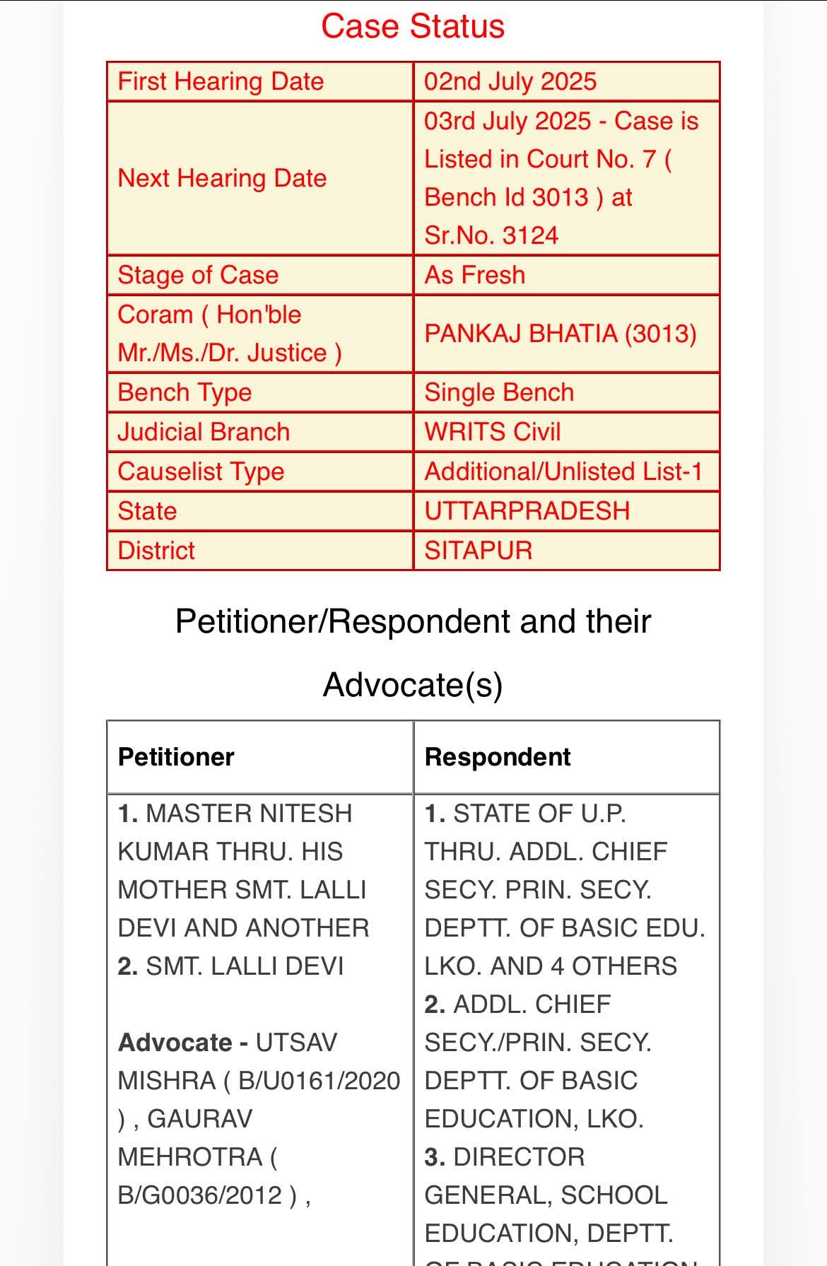 Home PRIMARY KA MASTER NEWS स्कूल मर्जर केस आज के लिए list हो गया है नंबर कुछ भी हो पर बारह बजे के लिए कोर्ट ने रखा है