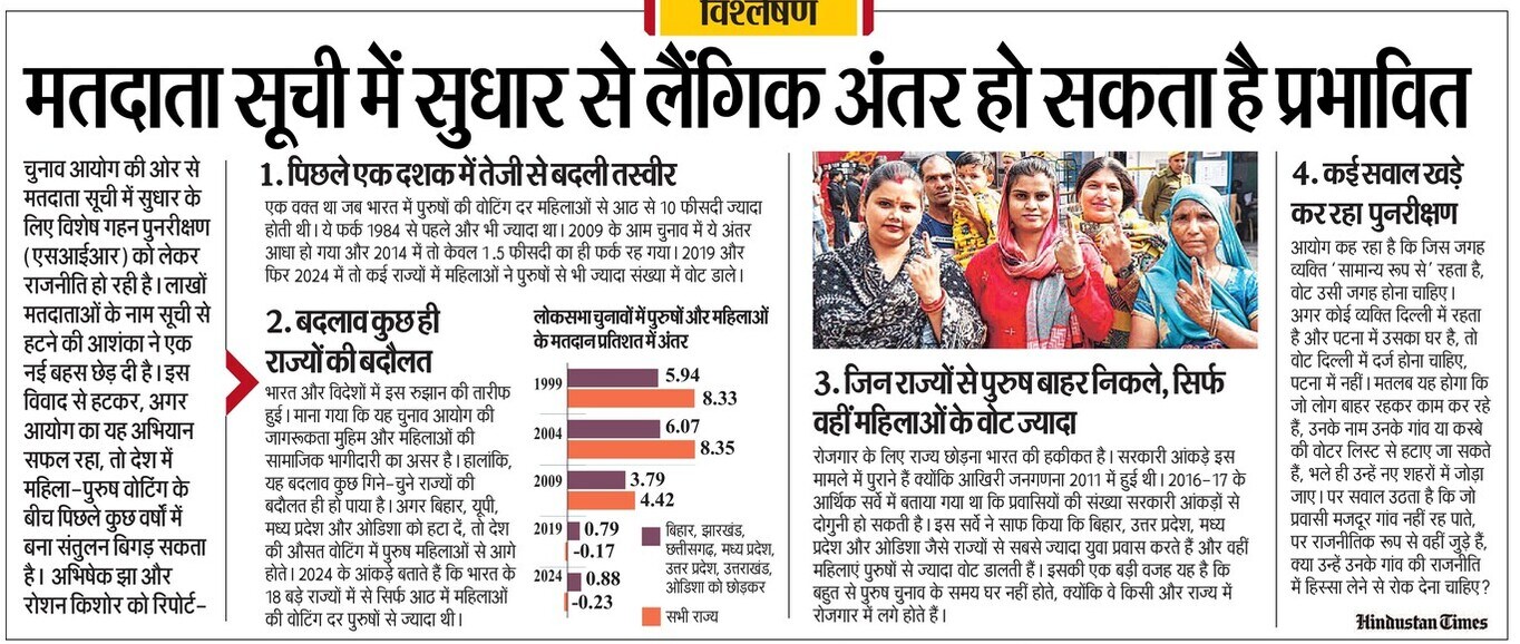 Home News मतदाता सूची में सुधार से लैंगिक अंतर हो सकता है प्रभावित