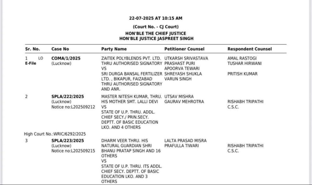 स्कूल मर्जर मामला केस मा. मुख्य न्यायाधीश इलाहाबाद उच्च न्यायालय, उत्तर प्रदेश की लखनऊ बेंच में मंगलवार को लिस्ट हो गया है
