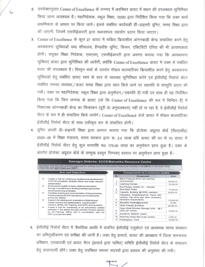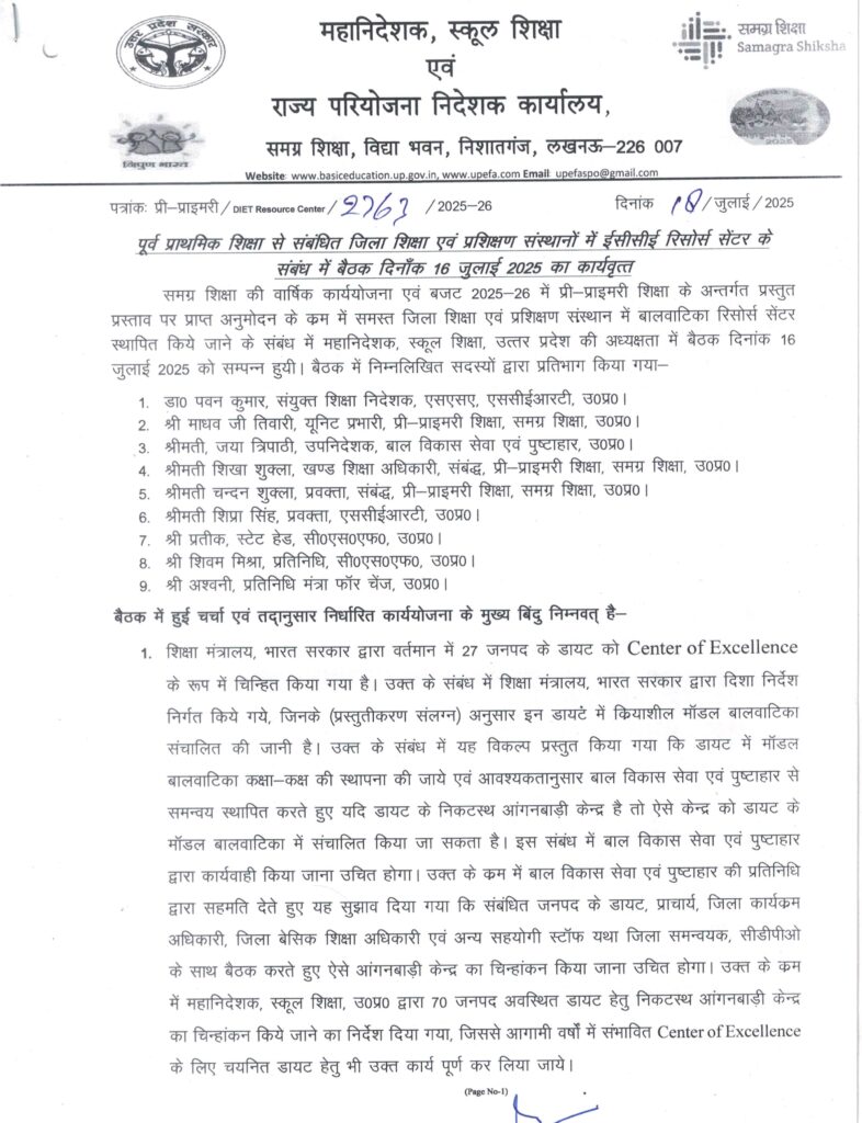 Primary ka master: पूर्व प्राथमिक शिक्षा से संबंधित जिला शिक्षा एवं प्रशिक्षण संस्थानों में ईसीसीई रिसोर्स सेंटर के संबंध में बैठक दिनाँक 16 जुलाई 2025 का कार्यवृत्त