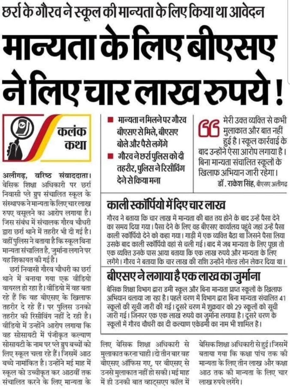 आरोप : मान्यता के लिए बीएसए ने लिए चार लाख रुपये !