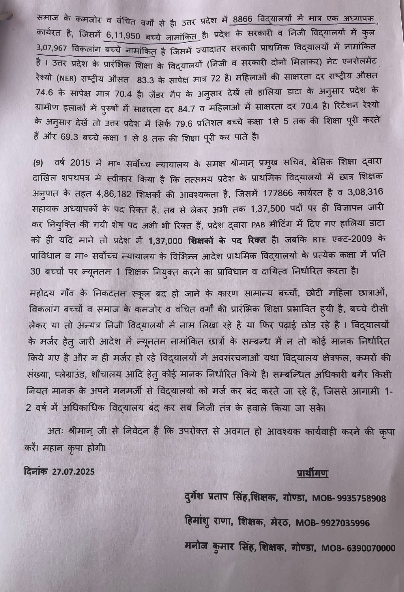गोंडा के माननीय सूरज सिंह भैया के माध्यम से जिस दिन हमारी मुलाकात समाजवादी पार्टी के राष्ट्रीय संयुक्त सचिव एवं विधायक माननीय शिवपाल यादव जी से हुई थी, उसी दिन हमने तथ्य, प्रमाण और लिखित ज्ञापन देकर अनुरोध किया था कि हमारा मुद्दा पूरे प्रदेश में उठाया जाए।