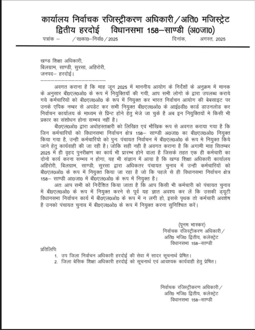 BLO DUTY -पंचायत या विधानसभा दोनों में से किसी एक ही जगह लगेगी ड्यूटी , देखें