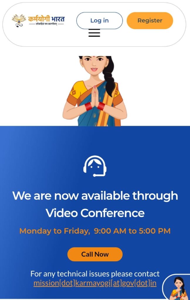 कर्मयोगी एप पर रजिस्ट्रेशन सम्बन्धी आ रही समस्या के निराकरण के लिए  सोमवार से शुक्रवार को किसी भी कार्यदिवस  में  call now पर क्लिक कर अपनी समस्या का निराकरण करा सकते हैं।