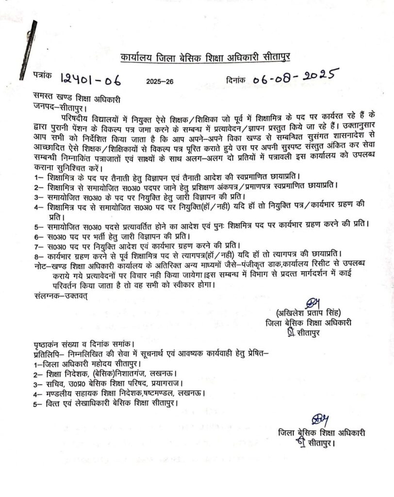 Home PRIMARY KA MASTER NEWS शिक्षामित्रों द्वारा पुरानी पेशन हेतु विकल्प पत्र उपलब्ध कराये जाने विषयक BSA का पत्र