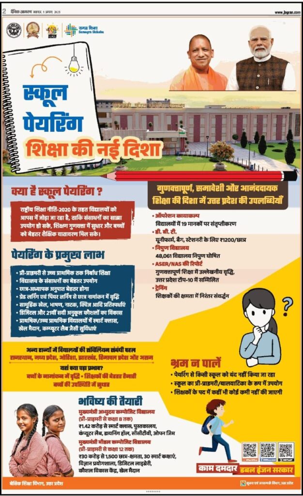 स्कूल पेयरिंग का आज के news paper 📰 me में विज्ञापन देखें