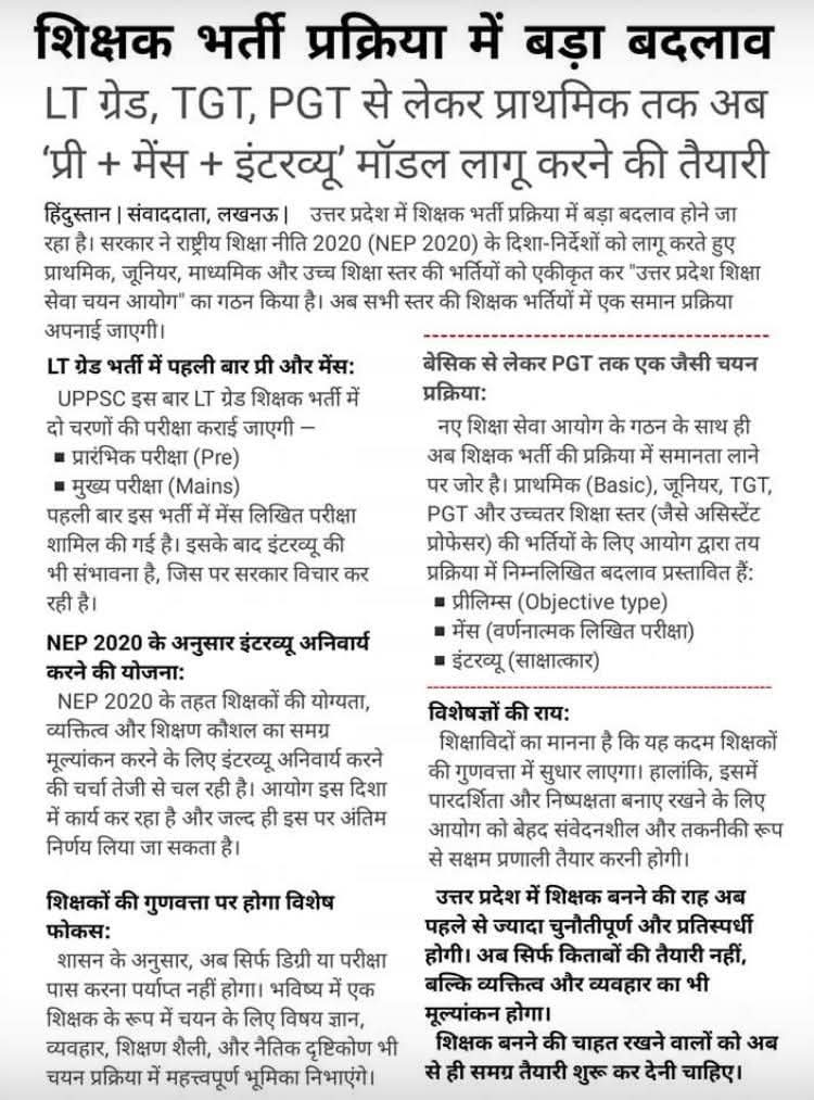 Home शिक्षा विभागTGT-PGT शिक्षक भर्ती प्रक्रिया में बड़ा बदलाव : LT ग्रेड, TGT, PGT से लेकर प्राथमिक तक अब ‘प्री + मेंस + इंटरव्यू’ मॉडल लागू करने की तैयारी