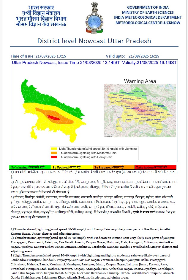 Home News भारत मौसम विज्ञान विभाग केंद्र, लखनऊ द्वारा जनपद में ऑरेंज एवं येलो अलर्ट प्रदर्शित किया गया है।☝️