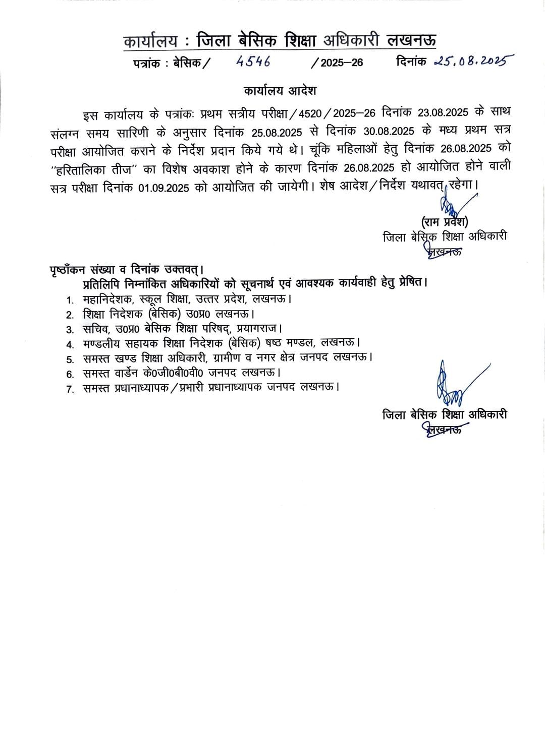 लखनऊ-कल होने वाली परीक्षा अब 1 सितम्बर को