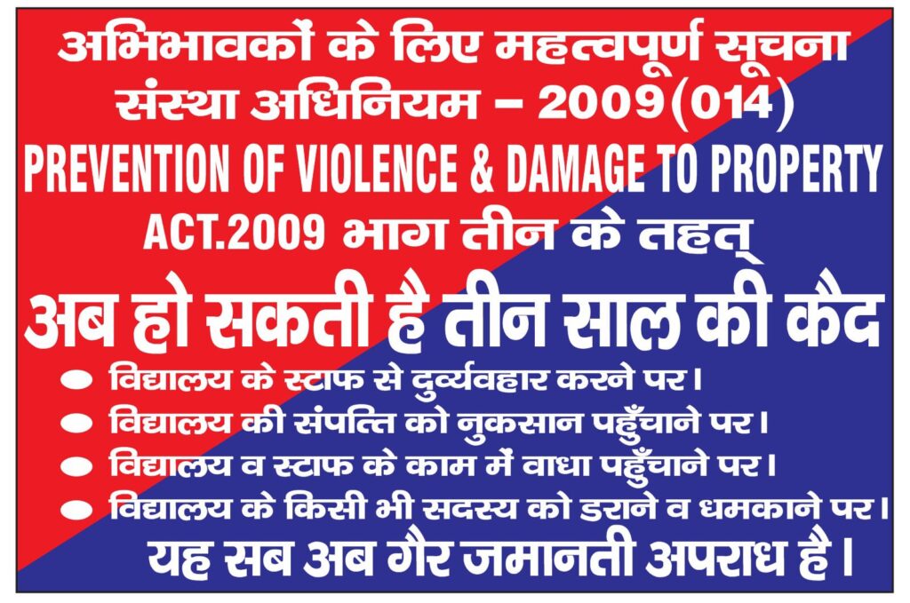 •विद्यालय व स्टाफ के काम में वाधा पहुँचाने पर।