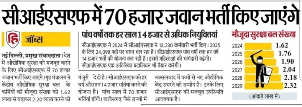 सीआईएसएफ में 70 हजार जवान भर्ती किए जाएंगे