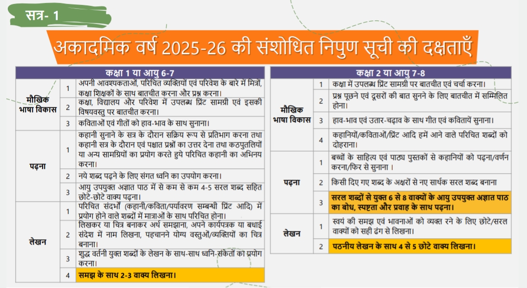 अकादमिक वर्ष 2025-26 की संशोधित निपुण सूची की दक्षताएँ, देखें