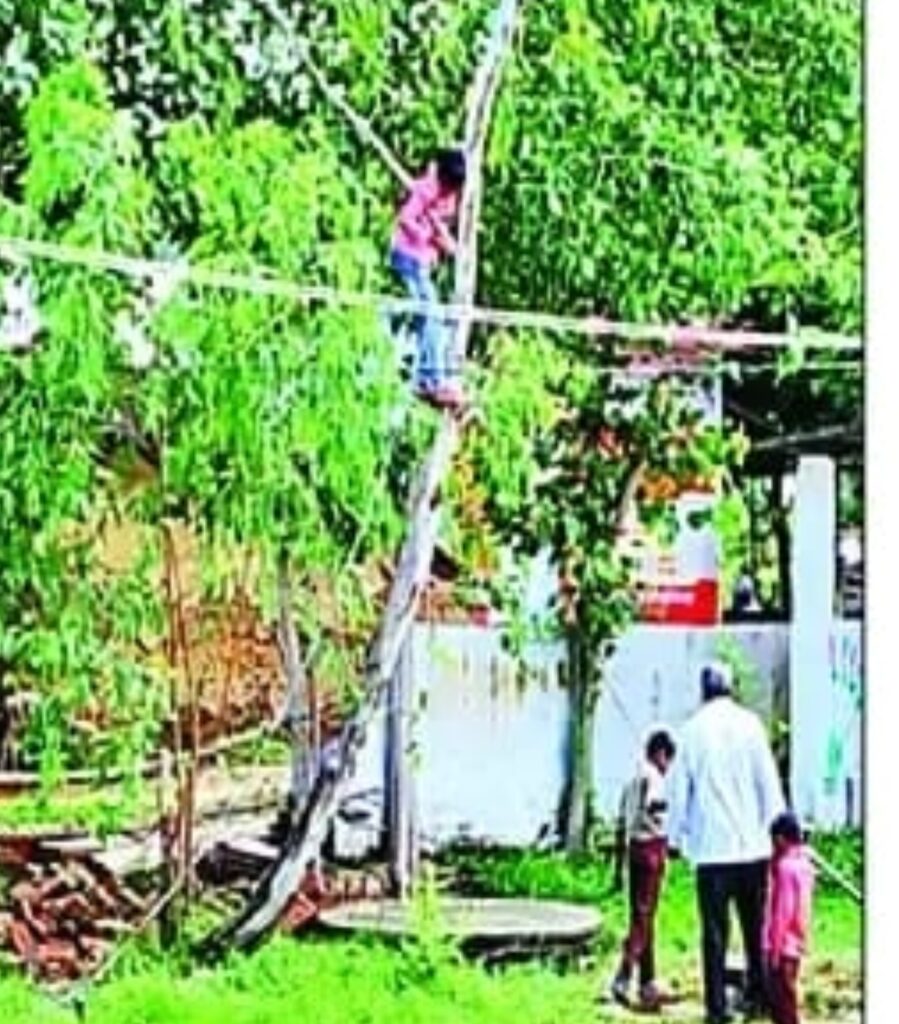 सुहास। कोरांव के संविलियन विद्यालय पथरताल में शुक्रवार को प्रधानाचार्य लालचंद्र पटेल द्वारा एक छात्र को पेड़ पर चढ़कर बिजली का तार ठीक कराने का वीडियो सोशल मीडिया पर वायरल है। जिसके बाद विभागीय अफसर हरकत में आए और प्रधानाचार्य को कारण बताओ नोटिस जारी किया।