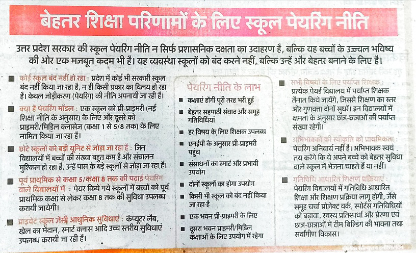 Home PRIMARY KA MASTER NEWS बेहतर शिक्षा परिणामों के लिए स्कूल पेयरिंग नीति