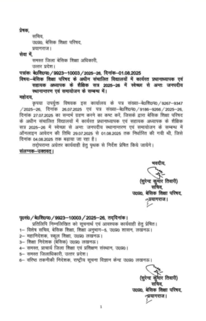 आदेश : समायोजन आवेदन अंतिम तिथि- 4 अगस्त तक