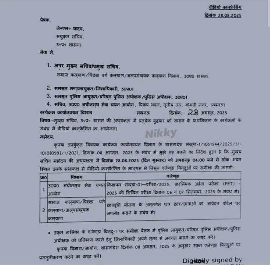 Home PRIMARY KA MASTER NEWS PET के संबंध में मुख्य सचिव महोदय की VC दिनांक 28.08.2025….✅