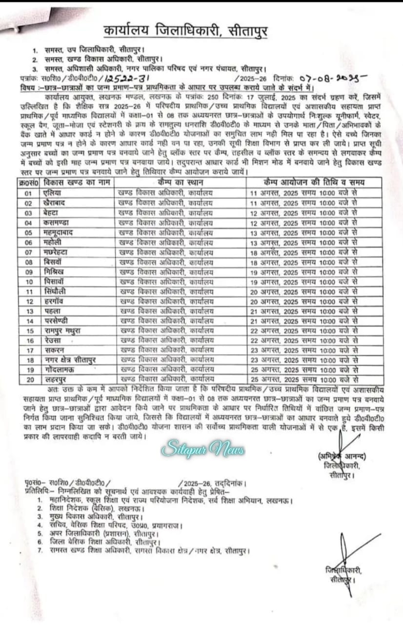 Home PRIMARY KA MASTER NEWS आदेश : कक्षा 1 से 8 तक के बच्चों का आधार एवं जन्म प्रमाण पत्र बनवाए जाने के संबंध में