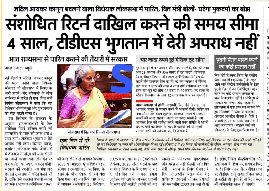 जटिल आयकर कानून बदलने वाला विधेयक लोकसभा में पारित, वित्त मंत्री बोलीं- घटेगा मुकदमों का बोझ, संशोधित रिटर्न दाखिल करने की समय सीमा 4 साल, टीडीएस भुगतान में देरी अपराध नहीं