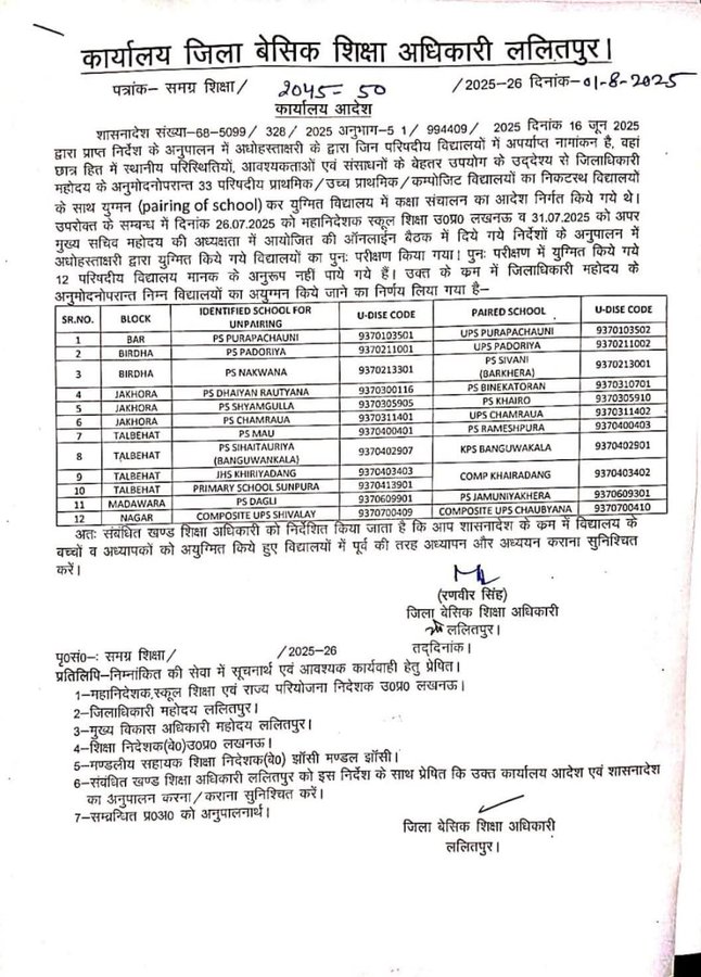 Home PRIMARY KA MASTER जनपद में 12 विद्यालयों का मर्जर निरस्त किया गया!