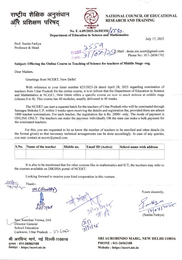 Home PRIMARY KA MASTER कक्षा 6-8 के शिक्षकों हेतु विज्ञान विषय आधारित ऑनलाइन प्रशिक्षण हेतु नामांकन उपलब्ध कराये जाने के संबंध में।