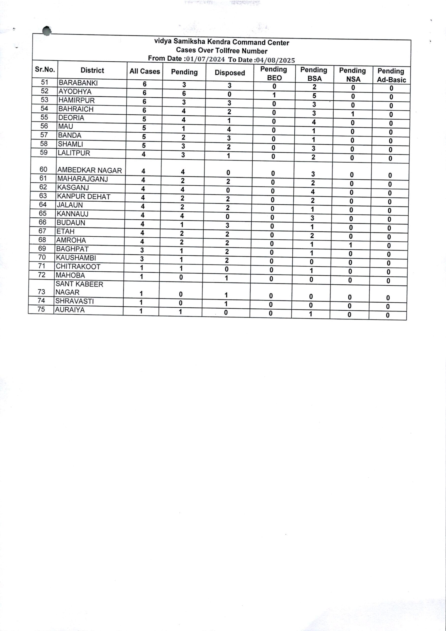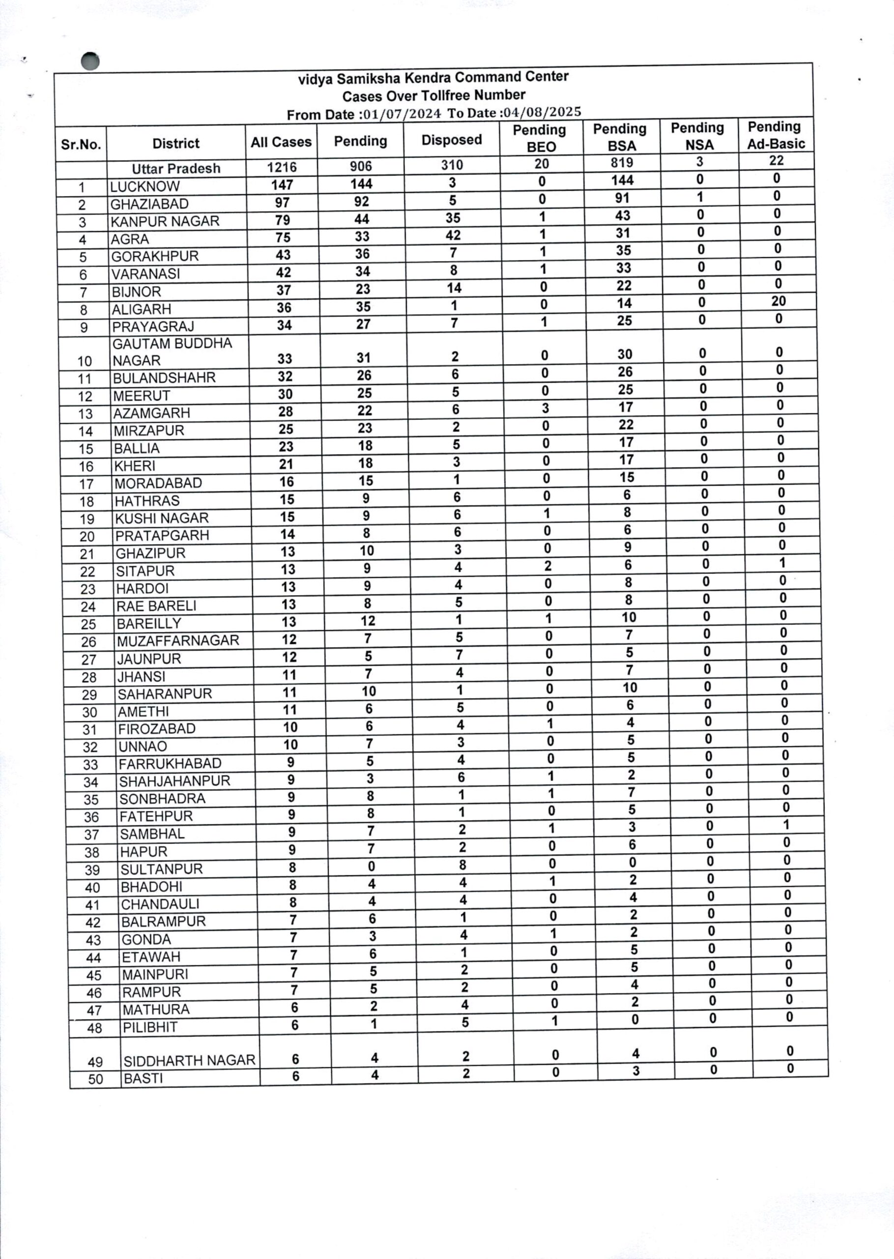 Home PRIMARY KA MASTER टोल फ्री नम्बर- 18008893277 पर जन समुदाय द्वारा की गई शिकायतों की आख्या अपलोड कराने के सम्बन्ध में।