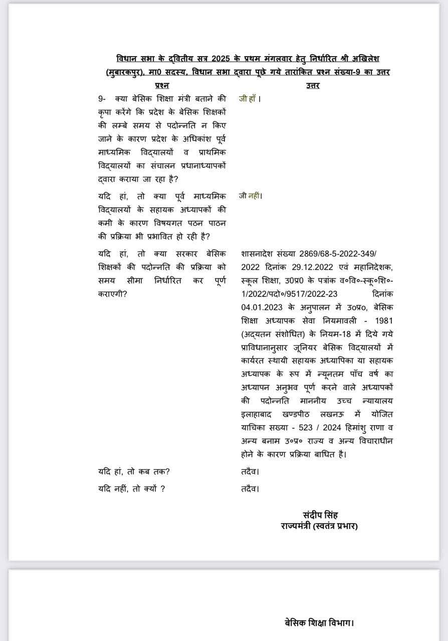 स्थिति पहले भी स्पष्ट हो चुकी थी और अब शिक्षामंत्री जी ने कल भी लिखित में बता दिया है। बाकी कहते रहो कि मिशन प्रमोशन चल रहा है या हमारी याचिका के अधीन है, हकीकत सबके सामने है। मैंने पहले ही कहा था कि हेड मास्टर फॉर्म न भरें, लेकिन अब जब वापसी होगी तो वह जगह नहीं मिलेगी और न जाने किस विद्यालय में भेज दिया जाएगा।
