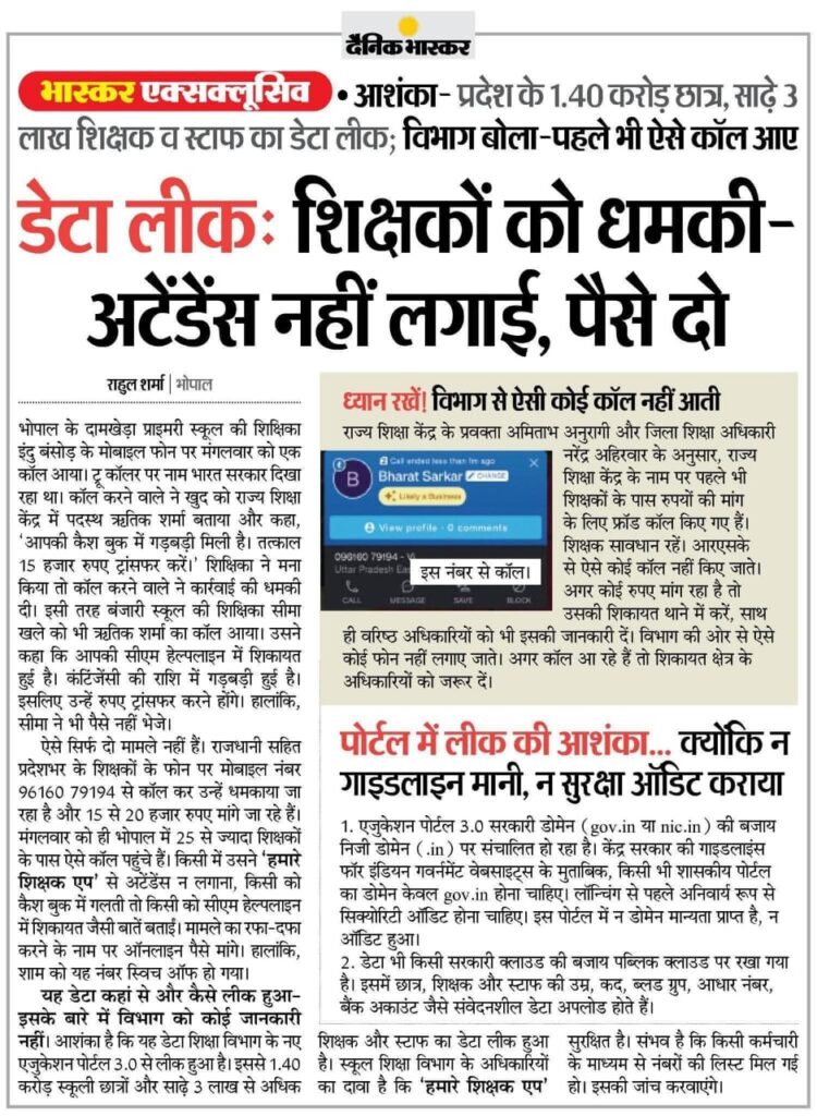 Home PRIMARY KA MASTER NEWS डेटा लीकः शिक्षकों को धमकी-अटेंडेंस नहीं लगाई, पैसे दो