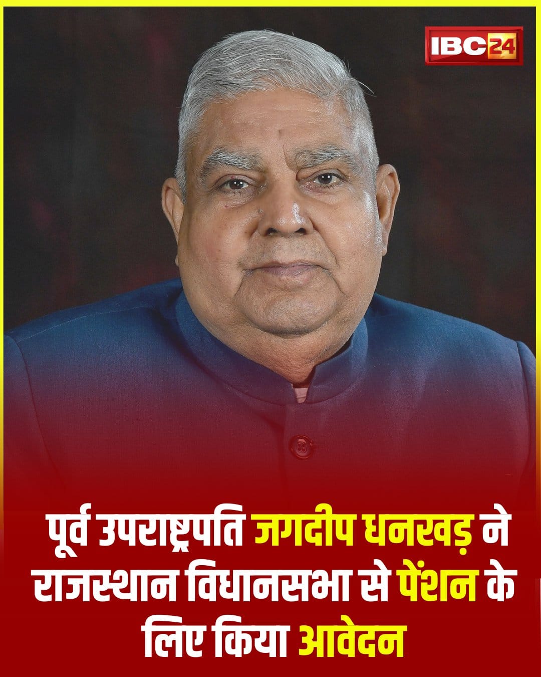 विधानसभा सचिवालय के अधिकारियों ने बताया कि 21 जुलाई को स्वास्थ्य कारणों का हवाला देते हुए इस्तीफा देने के बाद उपराष्ट्रपति के रूप में उनका कार्यकाल समाप्त हो गया है। उन्होंने पूर्व विधायक के रूप में अपनी पेंशन फिर से शुरू किए जाने का आवेदन किया है। धनखड़ जुलाई