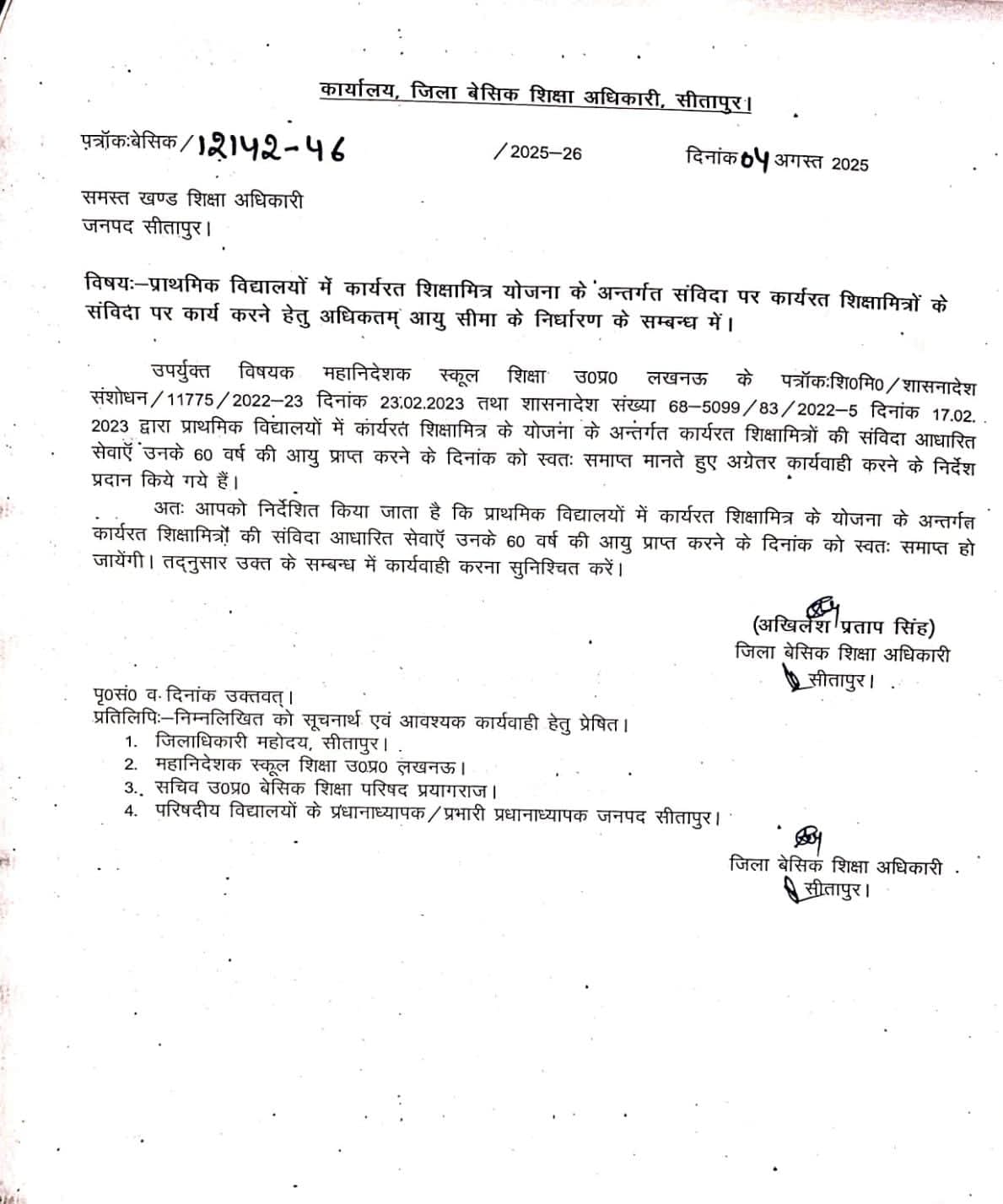 शिक्षामित्रों की आयु निर्धारण के संबंध में