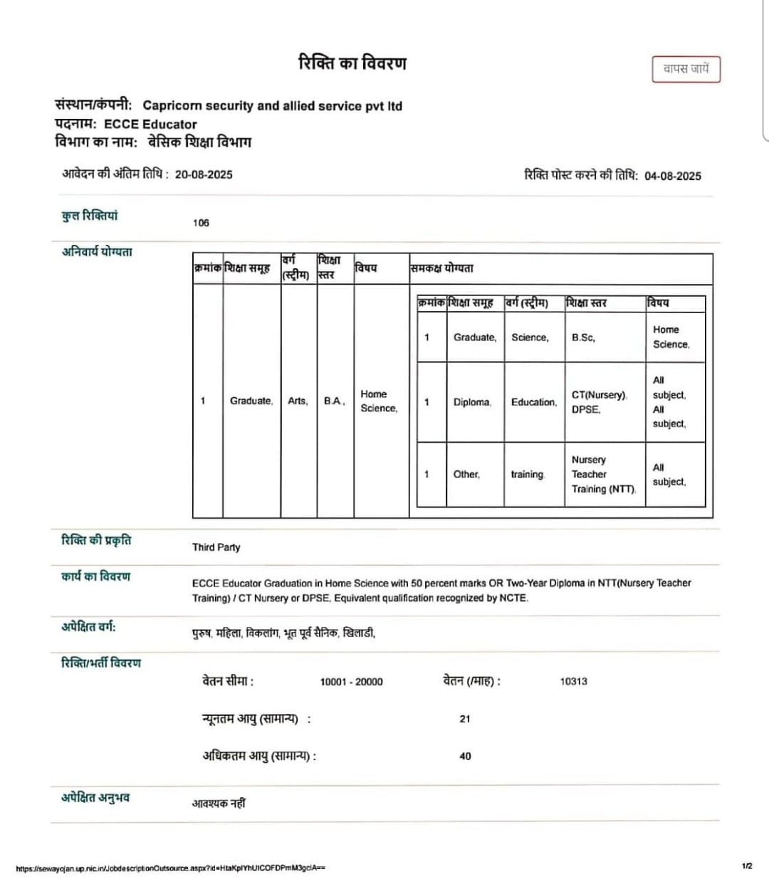 उत्तर प्रदेश ecce educator farukhabad की भर्ती का विज्ञापन जारी 🎯🎯