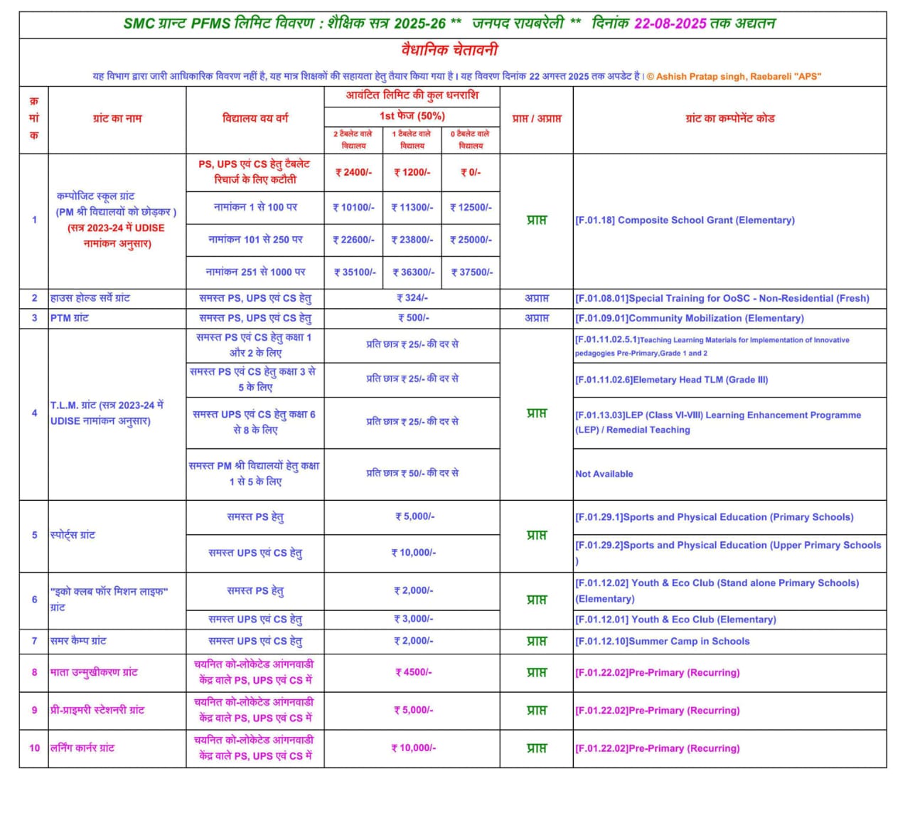 Home PRIMARY KA MASTER NEWS SMC ग्रांट विवरण☝️ दिनांक 22 अगस्त, 2025 तक अपडेट