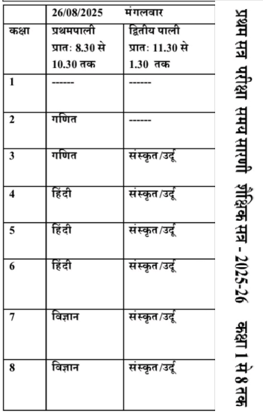 आज की सत्र परीक्षा समय सारिणी : जानिए आज किस कक्षा में होगी कौन से विषयों की परीक्षाएं: प्रथम सत्र परीक्षा 2025