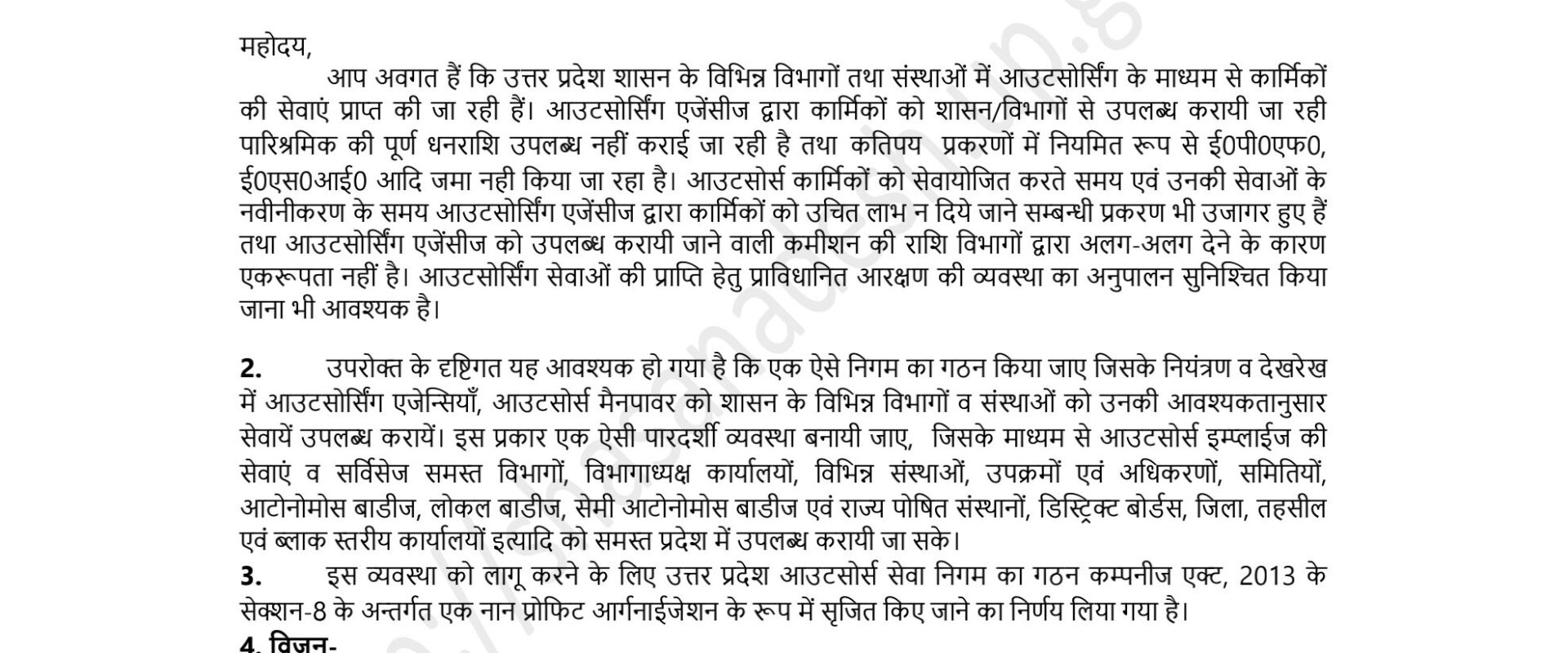उत्तर प्रदेश आउटसोर्स सेवा निगम का कम्पनीज एक्ट-2013 के सेक्शन-8 के अन्तर्गत एक पब्लिक लिमिटेड कम्पनी, (नान प्रोफिटेबल) का गठन विषयक