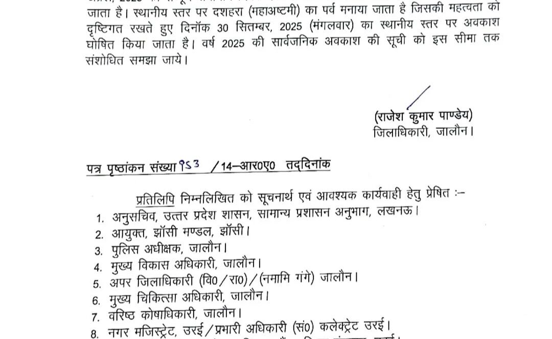 जिले में अवकाश सूची में बदलाव, अब 30 सितंबर को रहेगा स्थानीय अवकाश